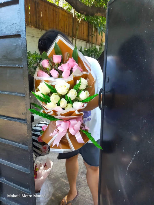 2dz. Pink and White Roses Bouquet
