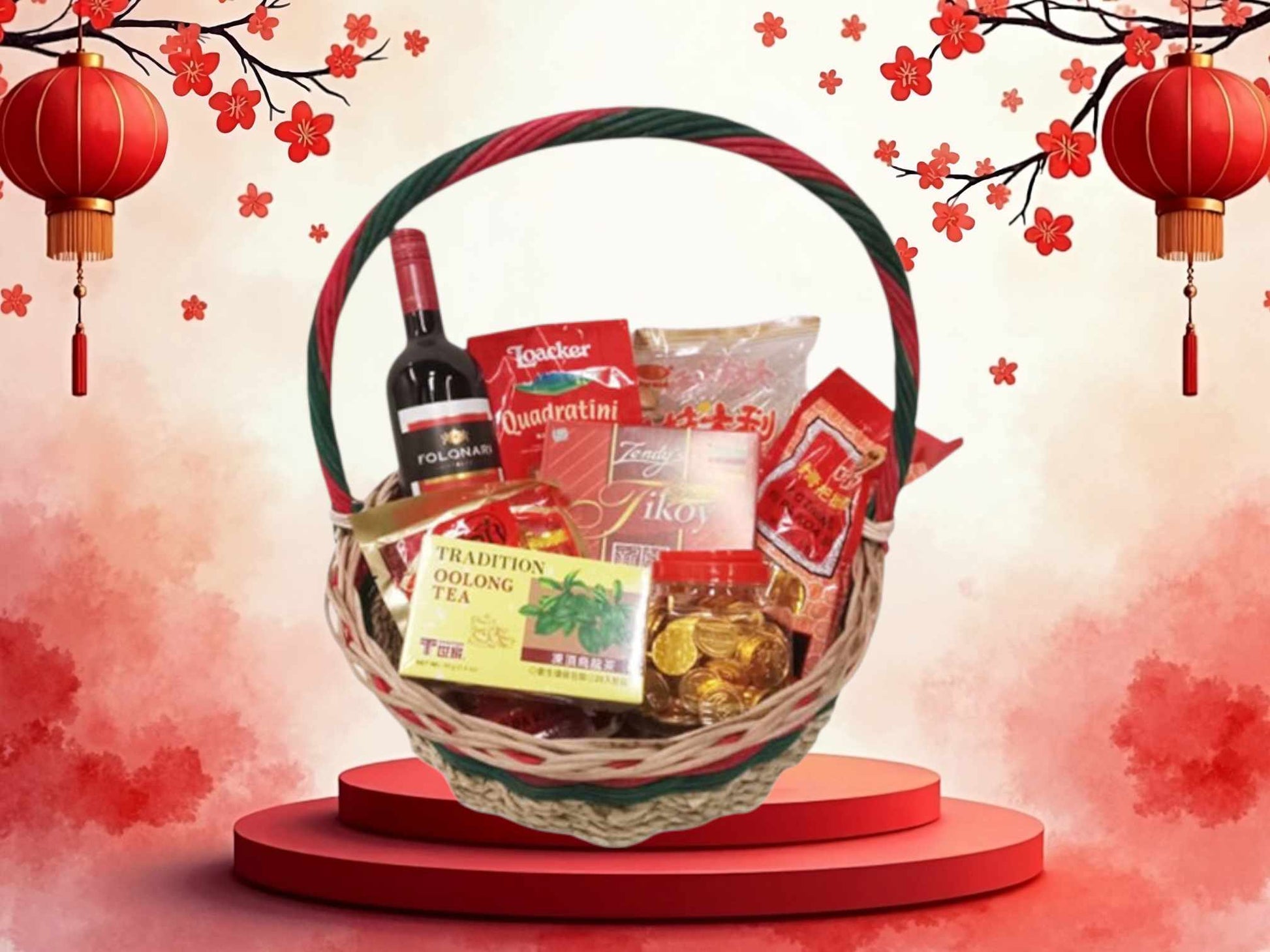 The Perfect Gift Basket for Greeting or Hosting a Successful Chinese New Year Party and have a Prosperous New Year.