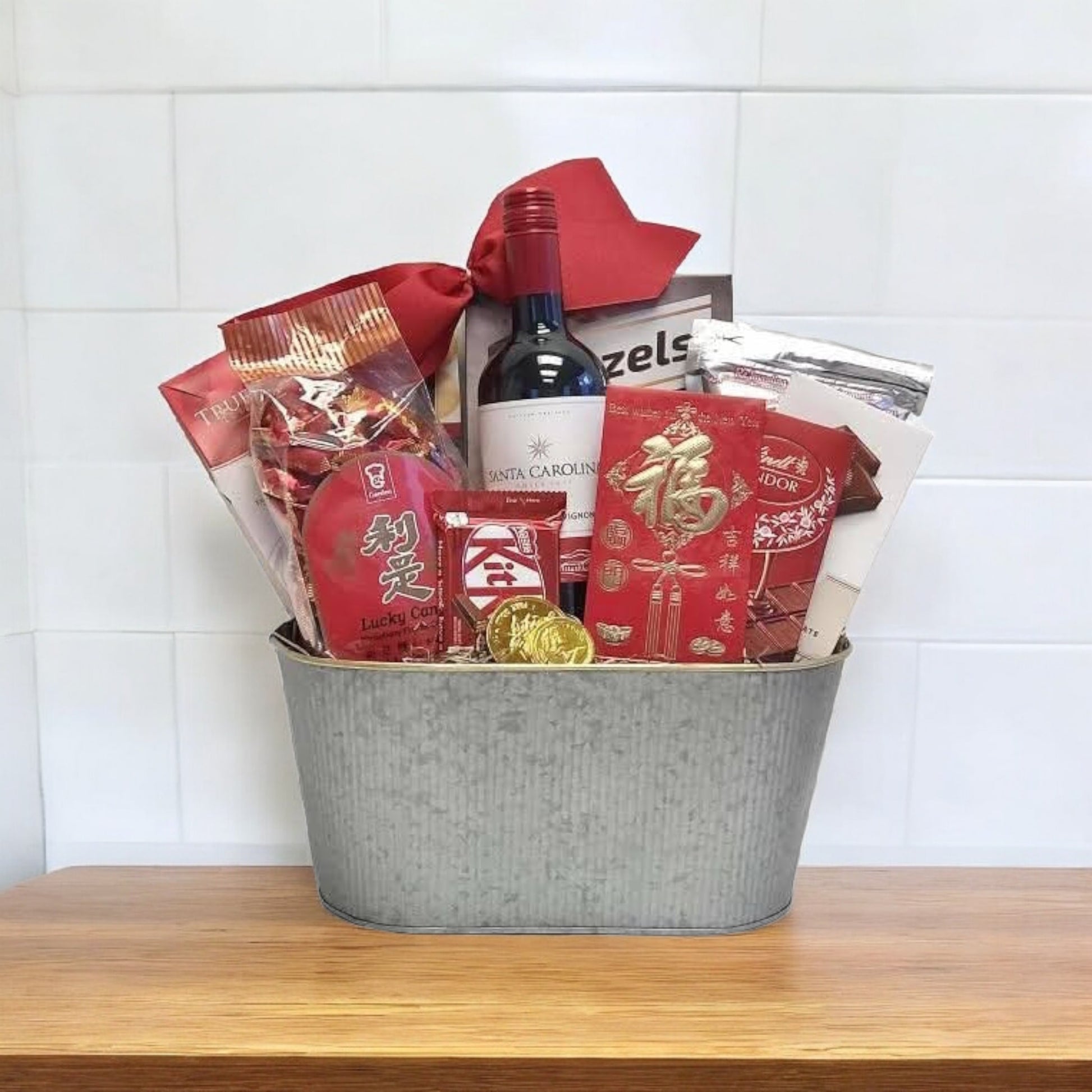 Send CNY hamper wishing a meteoric rise in achievements and more with a booty of Oriental Cookies and goodies in a traditional Wooden basket accessorized with festive ribbons. This CNY hamper include,